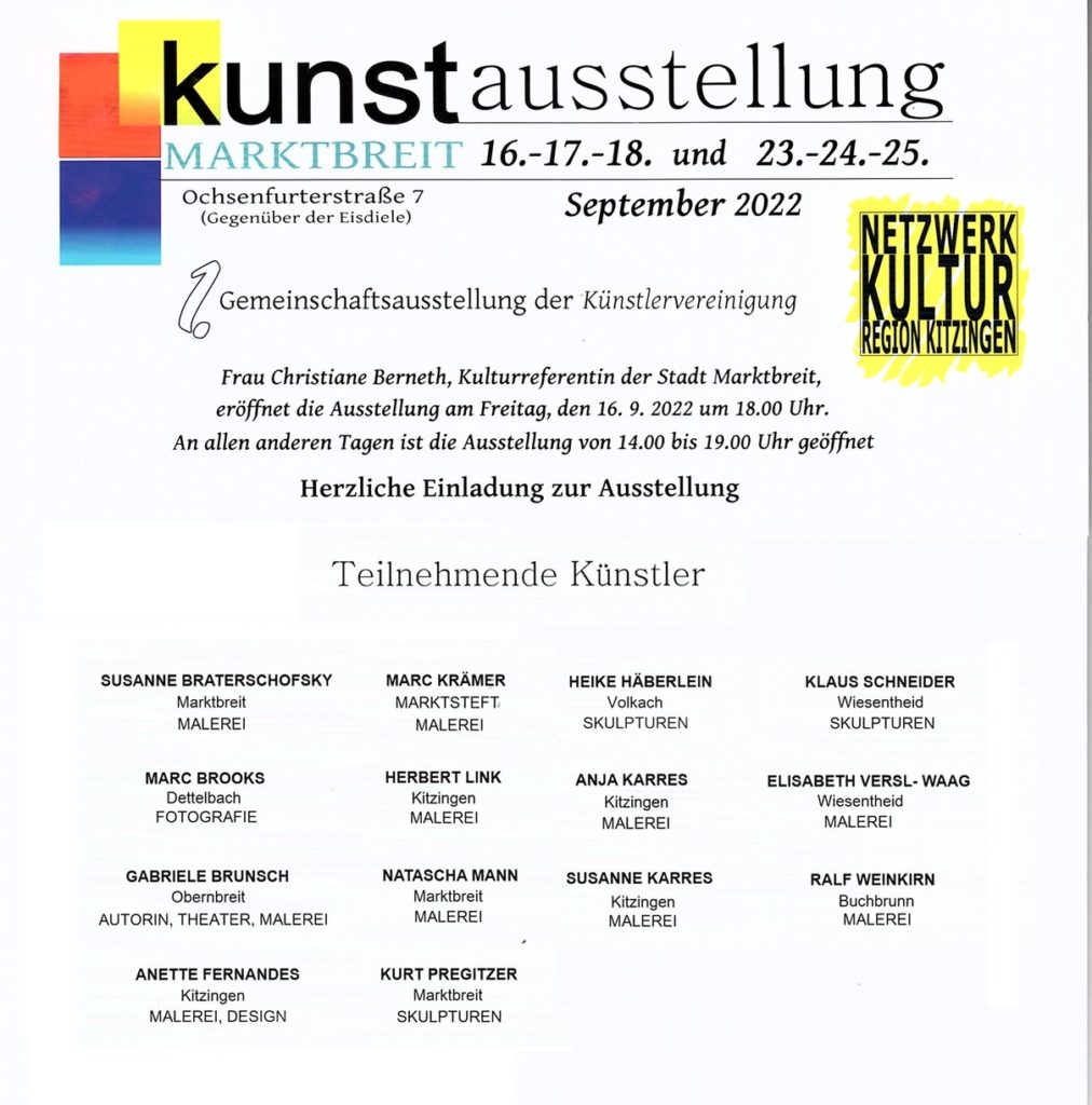 Dr. Claus-Peter Berneth, Sprecher des „Netzwerk Kultur Region Kitzingen“, dankte in seiner Ansprache allen beteiligten Kunstschaffenden und lobte die reibungslose Organisation durch die Stadt. „Viel besser hätte es nicht laufen können“, betonte er. Die Künstlerinnen und Künstler waren vom Ausstellungsort begeistert – und auch das Publikum nahm das Angebot erneut sehr gut an.